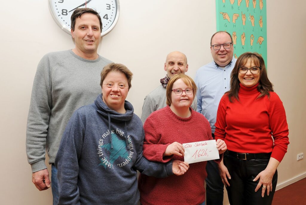 Schöne Unterstützung für die Betriebsstätte Saerbeck: Auf dem ersten Adventsmarkt des Münsterlandes hat die Orts-Union wieder unsere Produkte und eigene Getränke verkauft. Schon seit vielen Jahren unterstützen die Saerbecker Christdemokraten unsere Arbeit. Am 28. November haben uns Monika Schmidt (Vorsitzende) und ihr Stellvertreter, Florian Bücker, nun den Reinerlös des Vorjahres gebracht: 1626 Euro. Dieses Geld, versprach unser Bereichsleiter Joerg Wiermann, komme natürlich wieder direkt den 86 Beschäftigten der Betriebstätte zugute.