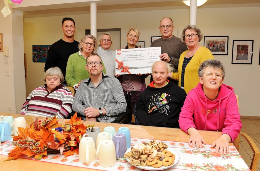 Das war tatsächlich ein vorgezogenes Weihnachtsgeschenk: 3000 Euro hat die Coppenrath & Wiese KG der Wohninitiative Mettingen (WIM) am 19. November gespendet. Seit 2011 wohnen an der Burgstraße 8, mitten im Ort, sieben Menschen mit Behinderungen und sind Mieter der WIM, des Elternvereins und Trägers dieses Intensiv Betreuten Wohnens. Alle Nutzerinnen und Nutzer sind in den Ledder Werkstätten beschäftigt, verfügen über schöne Gemeinschaftsräume und eigene, 35 Quadratmeter große Apartments. Wir sind dort Anbieter von Assistenzleistungen.