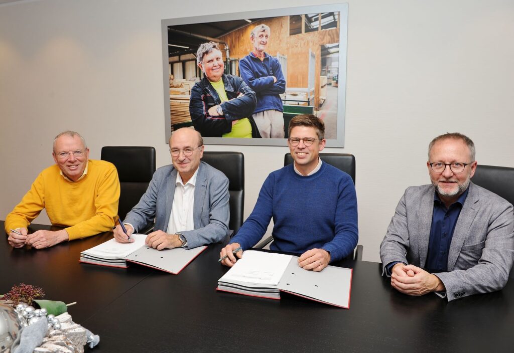 Moderner Wohnraum für 24 Menschen mit geistiger Behinderung und körperlichen Beeinträchtigungen. In einem klug konzipierten Gebäude, das allen Bedarfen dieser Zielgruppe gerecht wird und zugleich soziale Teilhabe fördert. Und eine Adresse mit dem Sozialraum vor der Haustür: Das ist unser Neubau-Projekt „An der Diekwiese“. Den Ersatzbau für unsere Besondere Wohnform realisieren wir mit den Ibbenbürener Investoren Karl Markmeyer (auf dem Foto links) und Carlo Markmeyer sowie Moritz Meyer (2. v. r.). Anfang 2026 ist Baubeginn; für den Bezug kalkulieren die Bauherren den Herbst 2027.