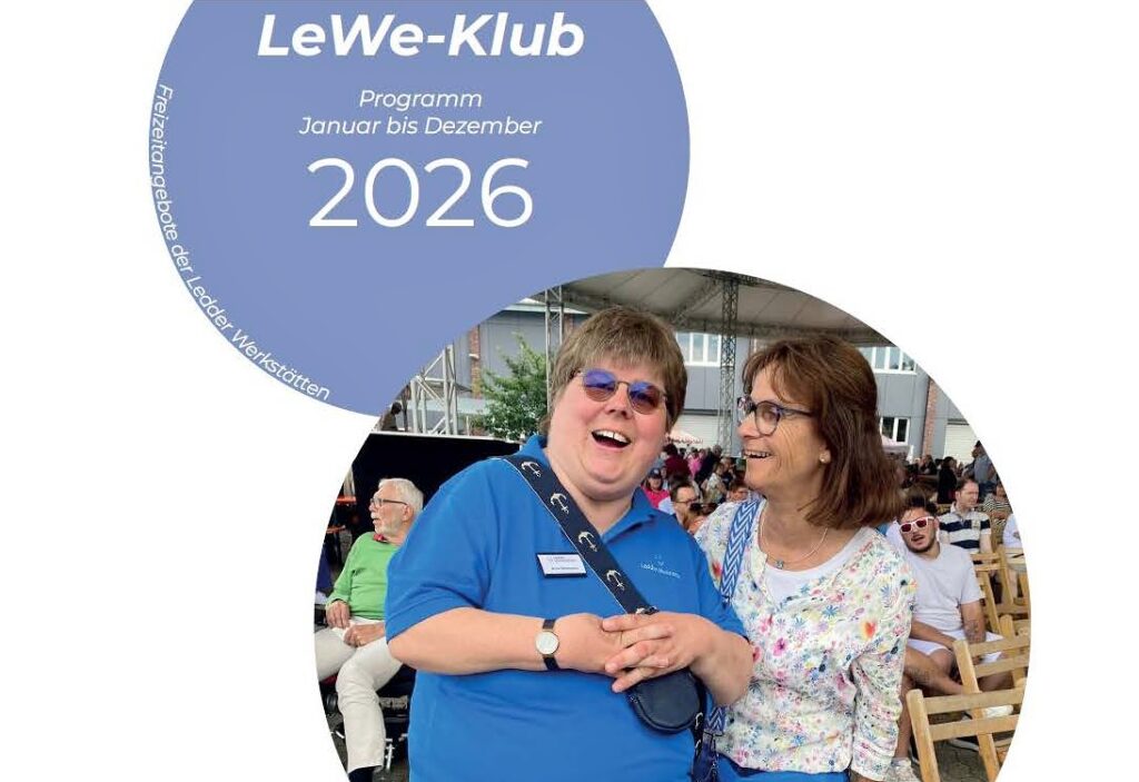 Unser Lewe-Klub startet mit neuem Programm, dem gewohnt übersichtlichen Jahreskalender zum Aufhängen daheim und Anmeldeformular 2026 ins neue Jahr. Die Programmhefte sind im Druck und liegen später in unseren Betriebsstätten und in unserem Ledder Empfang aus. Julia Prigge, Elisabeth Pott und Heinz Bischoff gehören weiter zum Mitarbeiterteam an der Bahnhofstraße in Ibbenbüren (direkt neben unserem Café Famano), außerdem aktuell auch 17 Ehrenamtliche. Weitere Ehrenamtliche, die Spaß an gemeinsam verbrachter Freizeit mit Menschen mit Behinderung haben, sind jederzeit willkommen.