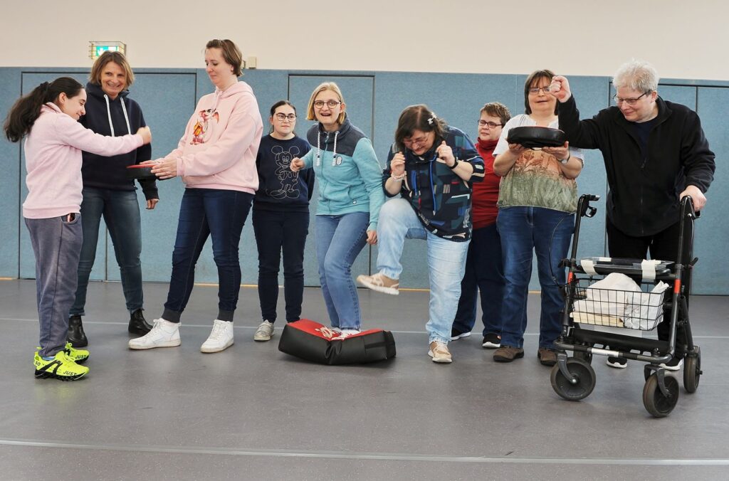 Das Selbstwertgefühl verbessern, erfahren, wie stark und selbstbewusst man sein kann, „Nein“ sagen können, Grenzen erkennen und sich selbst abgrenzen können – all das sind Effekte, wenn Ulla Berief in unserer Therapiehalle zu Gast ist. Die Mitarbeiterin der unabhängigen Frauenberatungsstelle Beckum (Fachstelle gegen sexualisierte Gewalt) bietet seit 2023 WENDO-Selbstbehauptungskurse bei uns an. Zwei Mal jährlich mit wechselnden Teilnehmerinnen, sodass inzwischen eine ganze Reihe Frauen mit Behinderung in ihren zweitägigen Kursen neues Selbstbewusstsein erlernt haben.