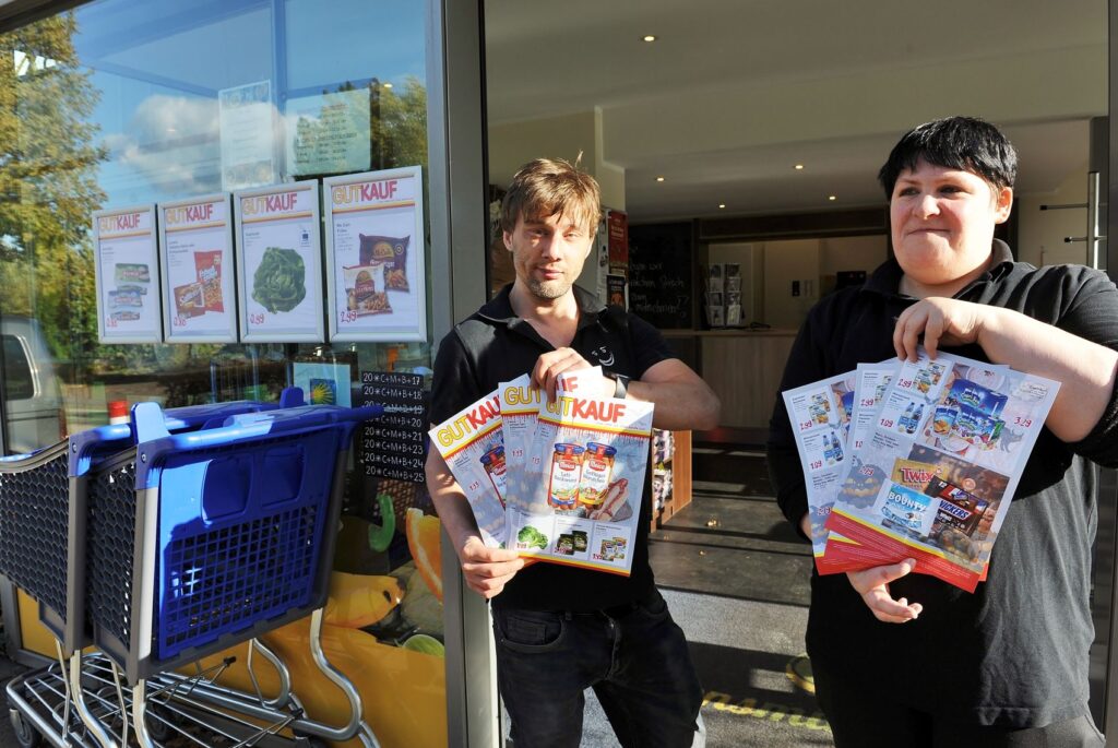 Jede Woche acht neue Sonderangebote: Unser LebensMittelpunkt in Leeden bietet neben großer Auswahl auf kleiner Fläche auch wöchentlich wechselnd Artikel zum Schnäppchenpreis an. Die Angebote gibt Edeka, dessen kleine Tochter die „Gutkauf“-Kette („Hier lebe ich, hier kauf´ ich“) ist, jeweils vor. Wie unser Bereichsleiter Björn Hippel weiter berichtet, würden viele Sonderangebote gut angenommen, sodass beispielsweise Bierrahmen im Angebot oft rasch vergriffen seien.